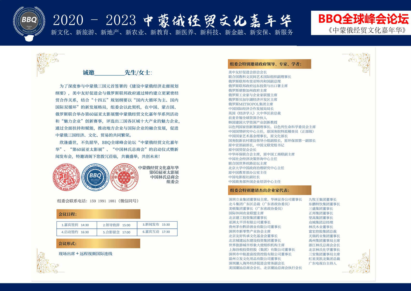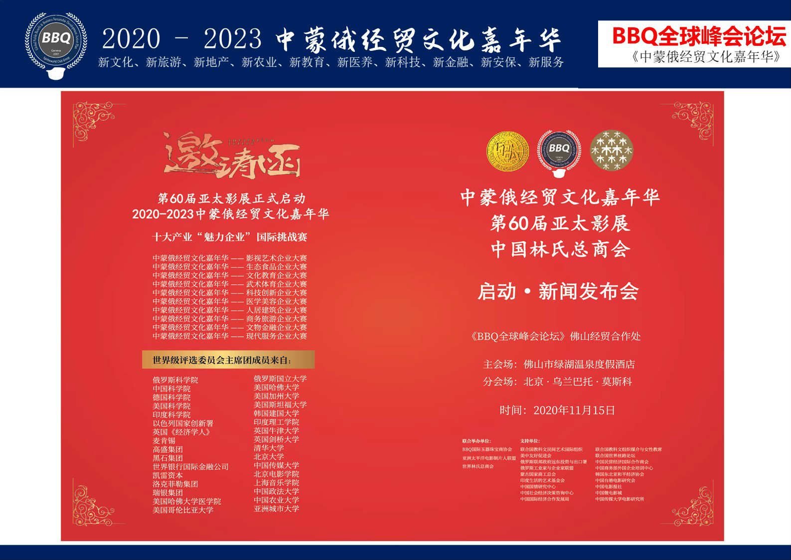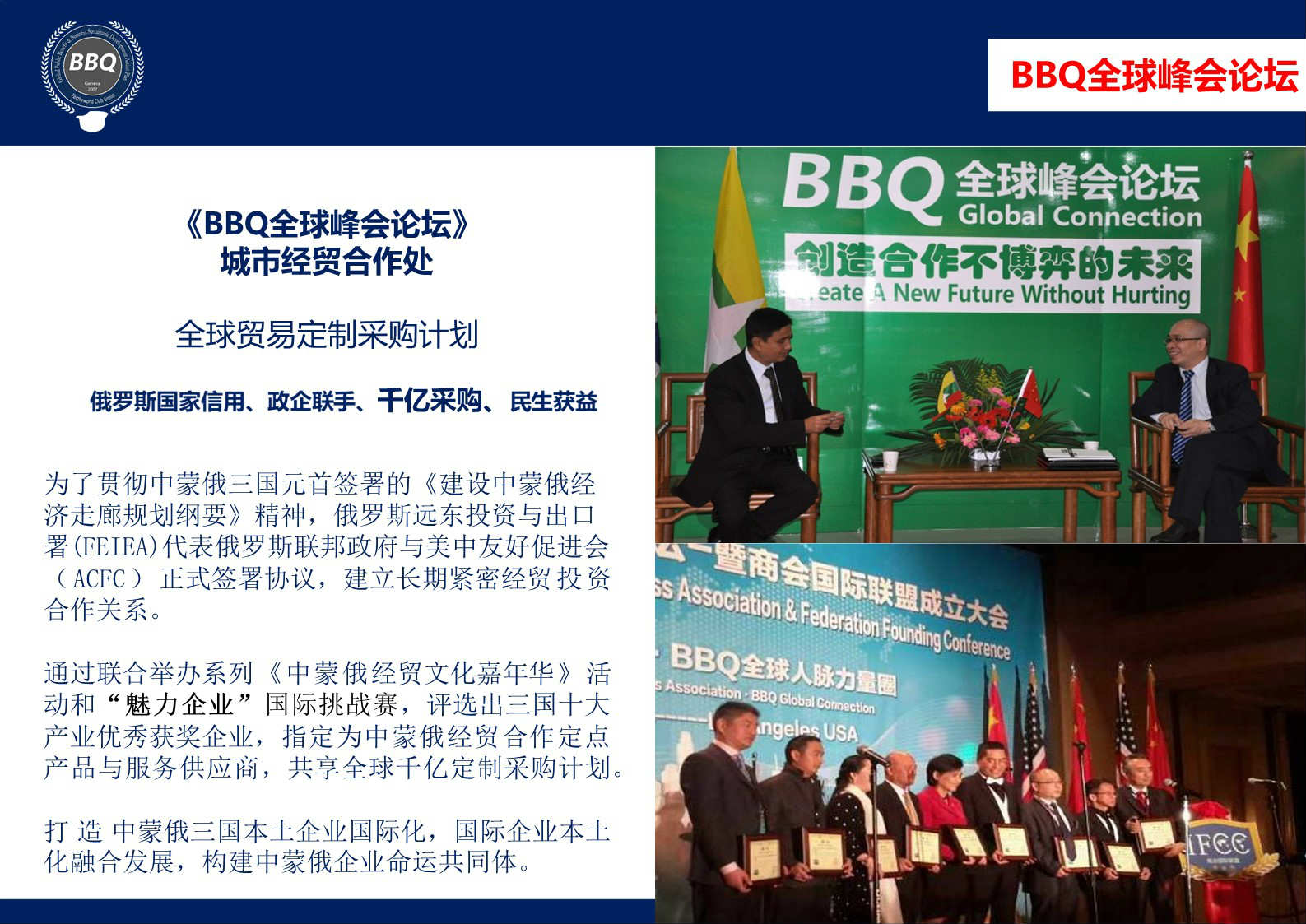 《BBQ全球峰会论坛》各国城市经贸合作处暨《中蒙俄经贸文化嘉年华》