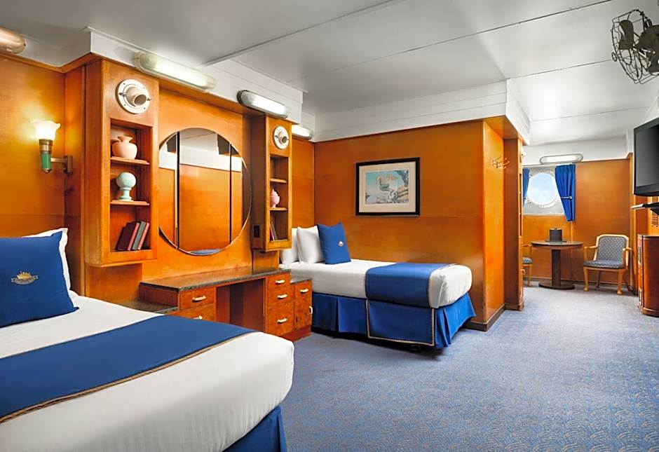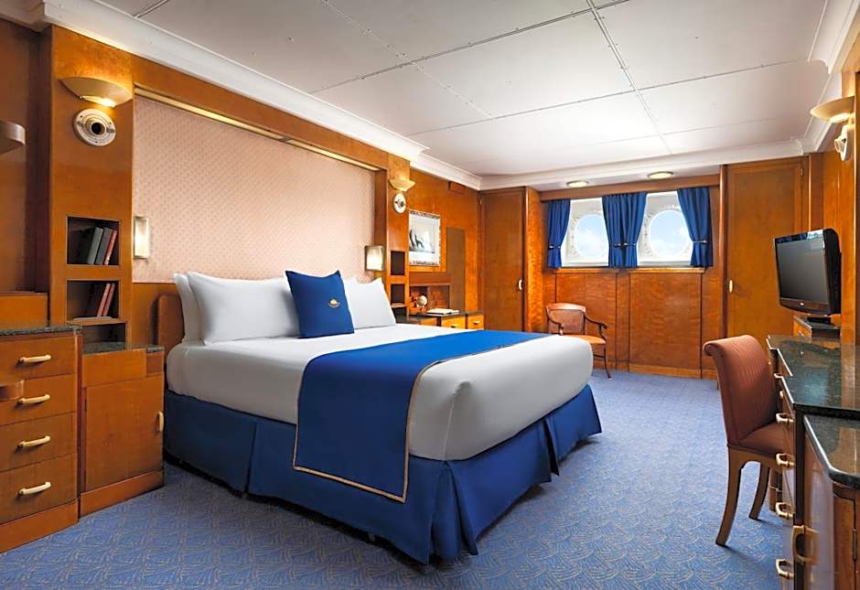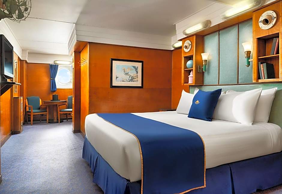 外观忠实复刻 RMS Queen Mary 经典设计(长度约 310 米、三烟囱 Art Deco 风格),内部全面现代化、零碳推进、AI 水资源管理、极端环境适应系统(依托 TOPSUN 管道与供水技术)。